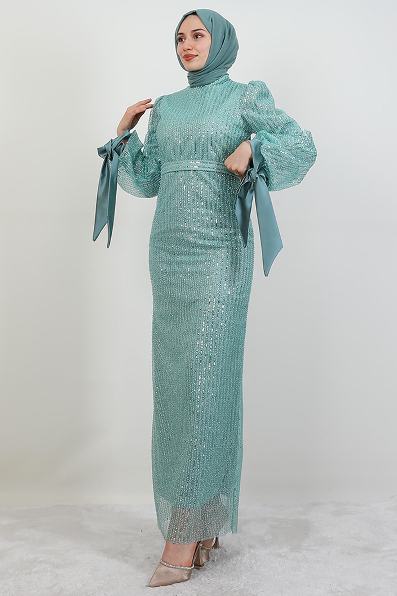 Aheste Boncuk İşleme Abiye Mint (5310018-M)