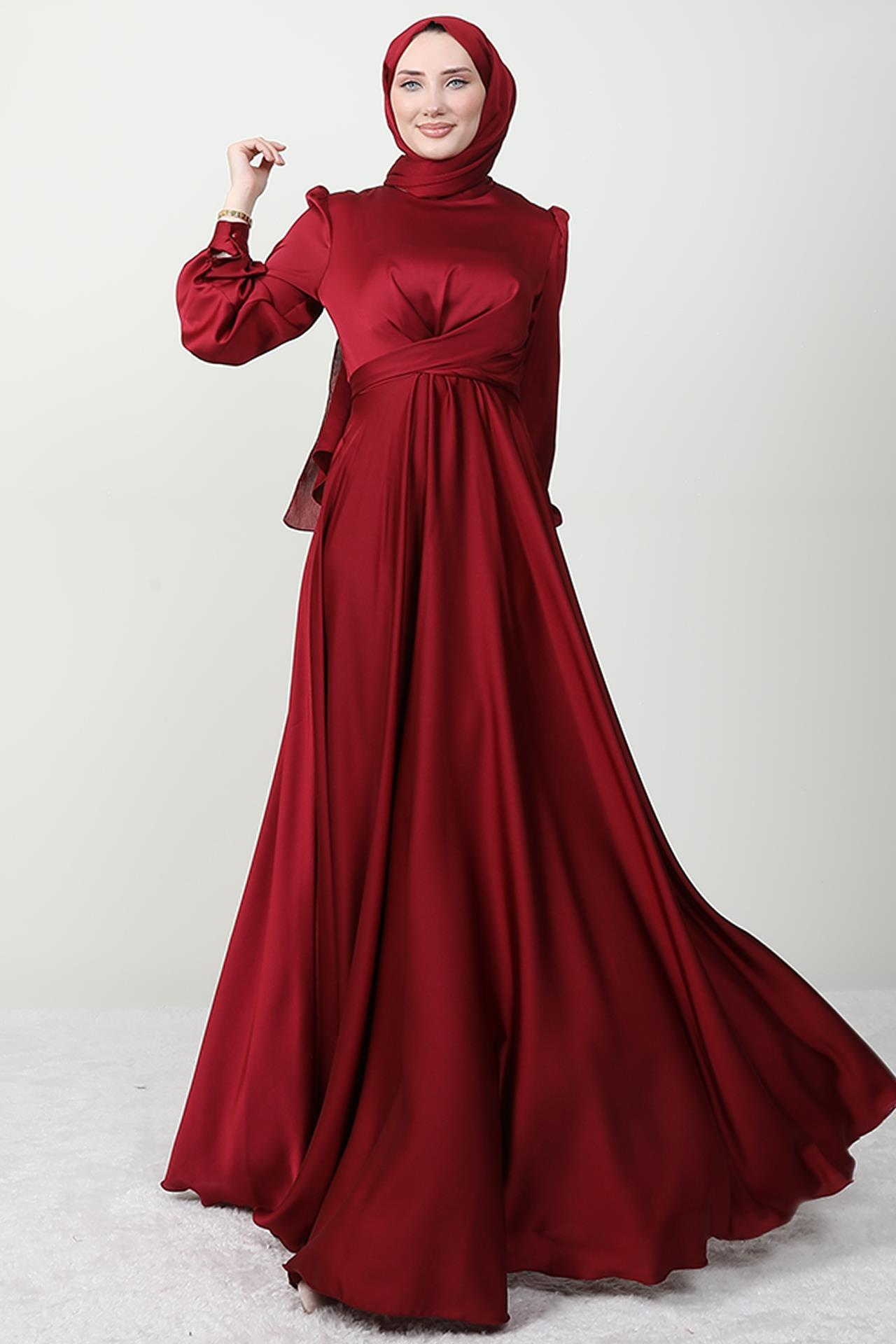 Çapraz Kuşaklı Abiye Bordo