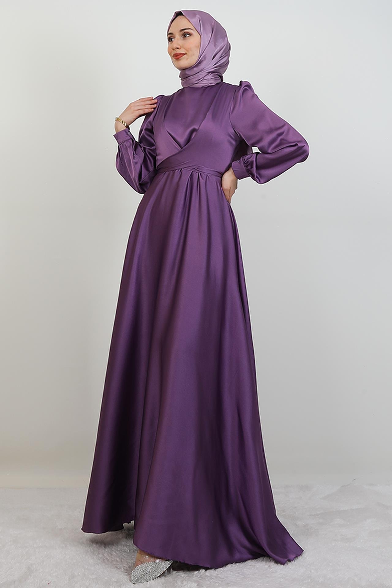 Çapraz Kuşaklı Abiye Koyu Lila (713368-KL)