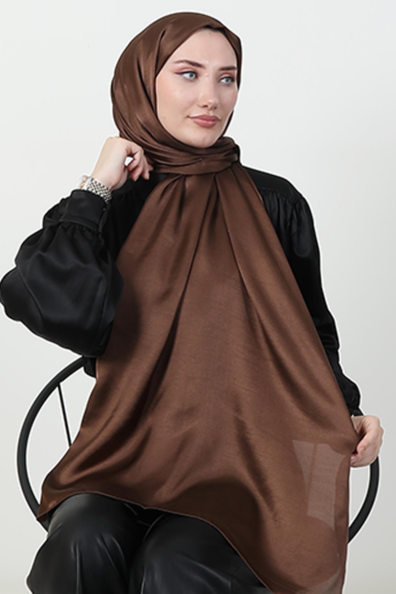İnci Saten Şal Koyu Kahve