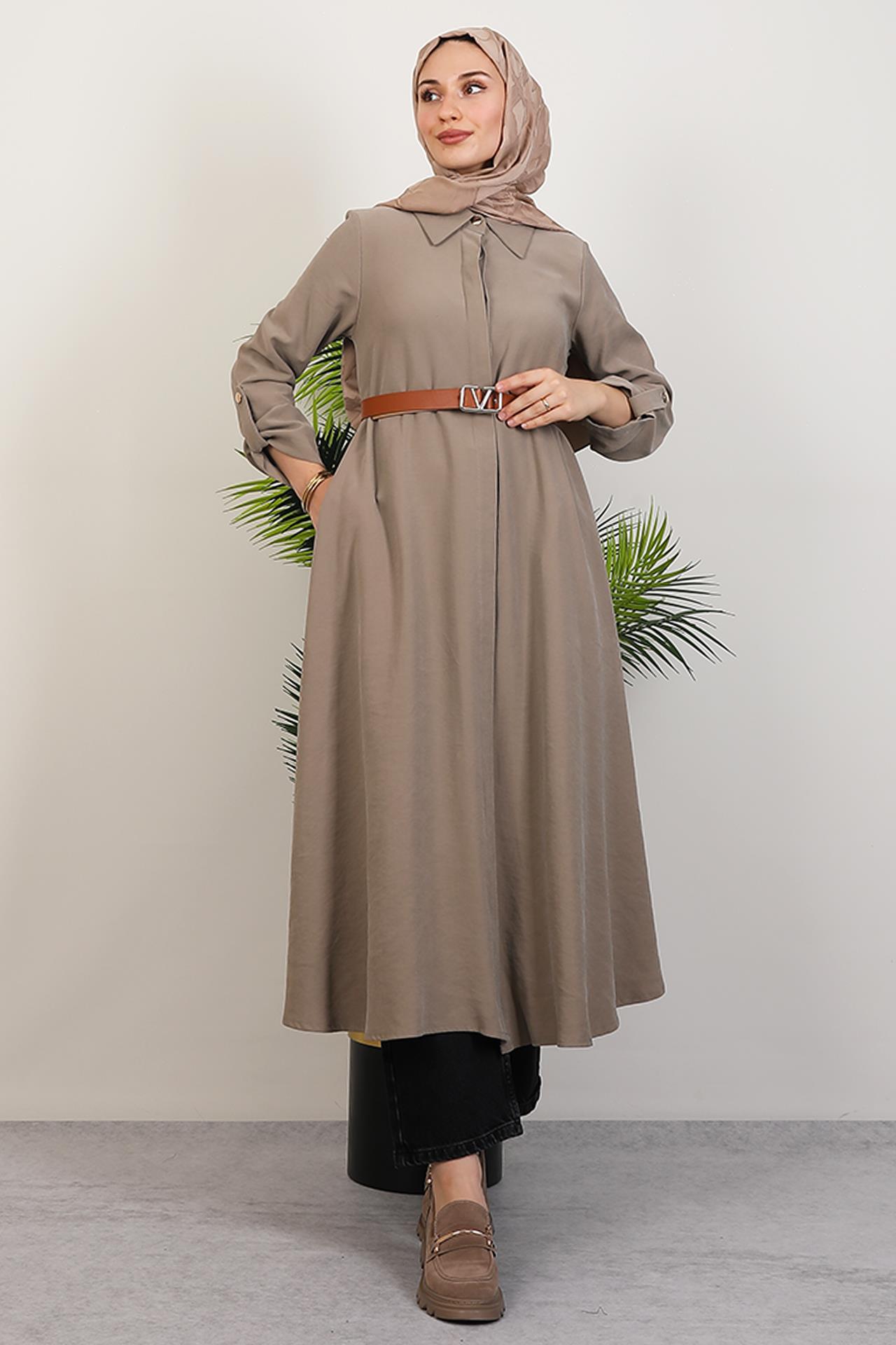 Kemerli Gömlek Tunik Vizon (104003-V)