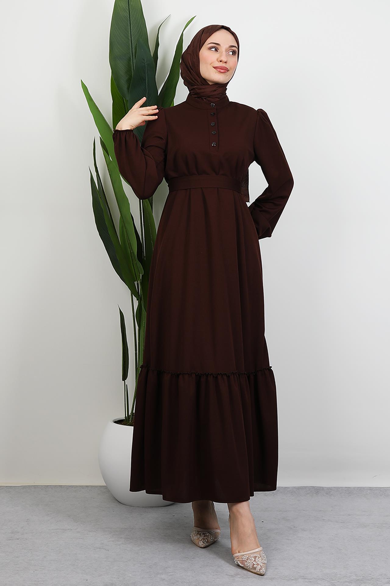 Lizge Tesettür Elbise Acı Kahve (428617-AK)