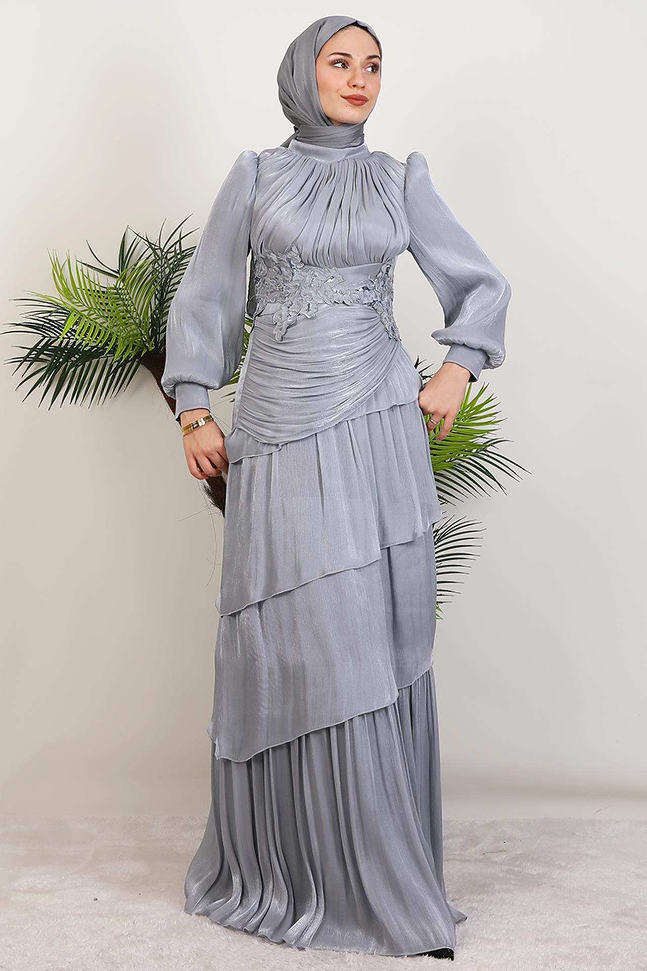 Menekşe Kat Kat Abiye Gri (715281-G)