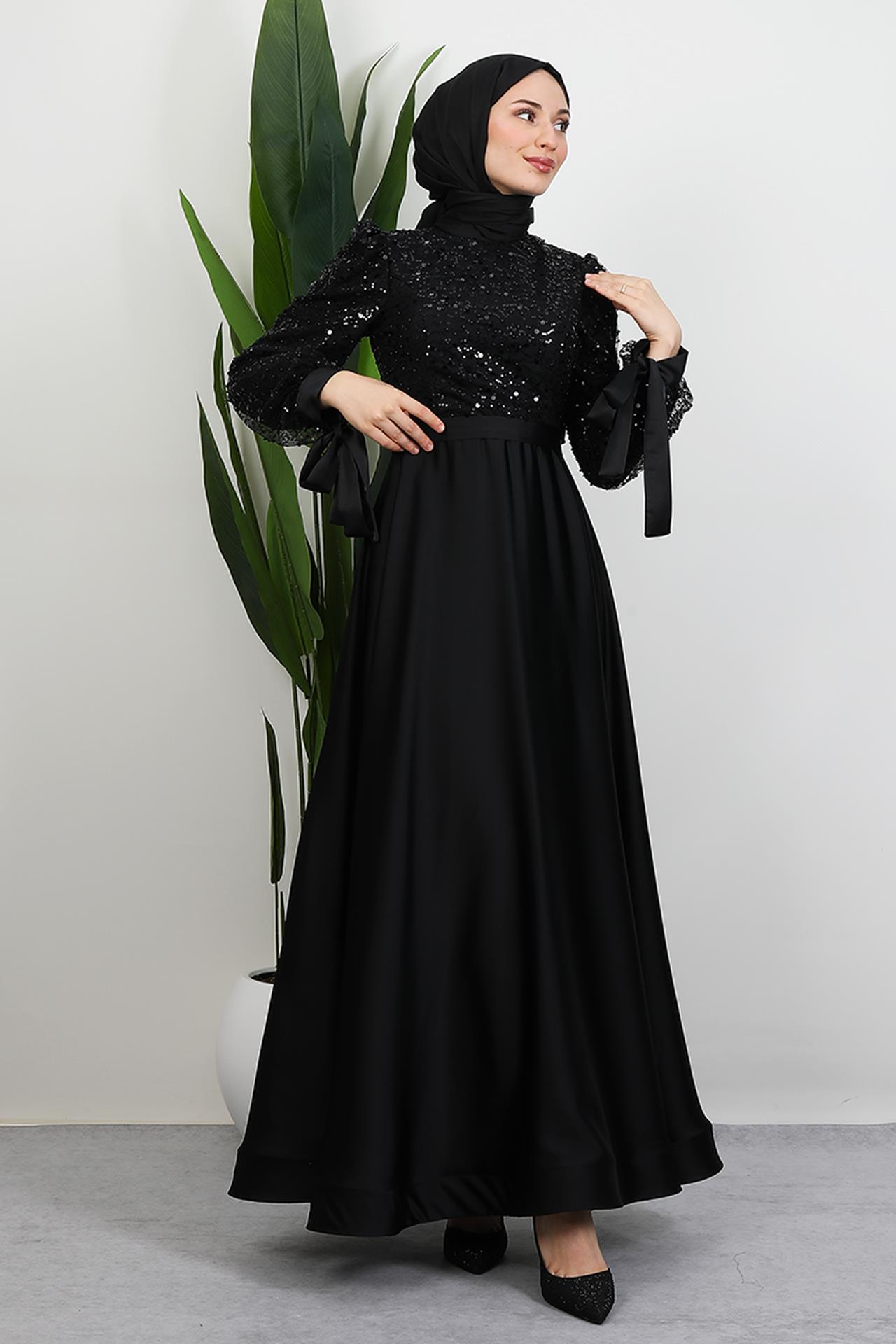 Tarlatanlı Pullu Abiye Siyah (442108-S)