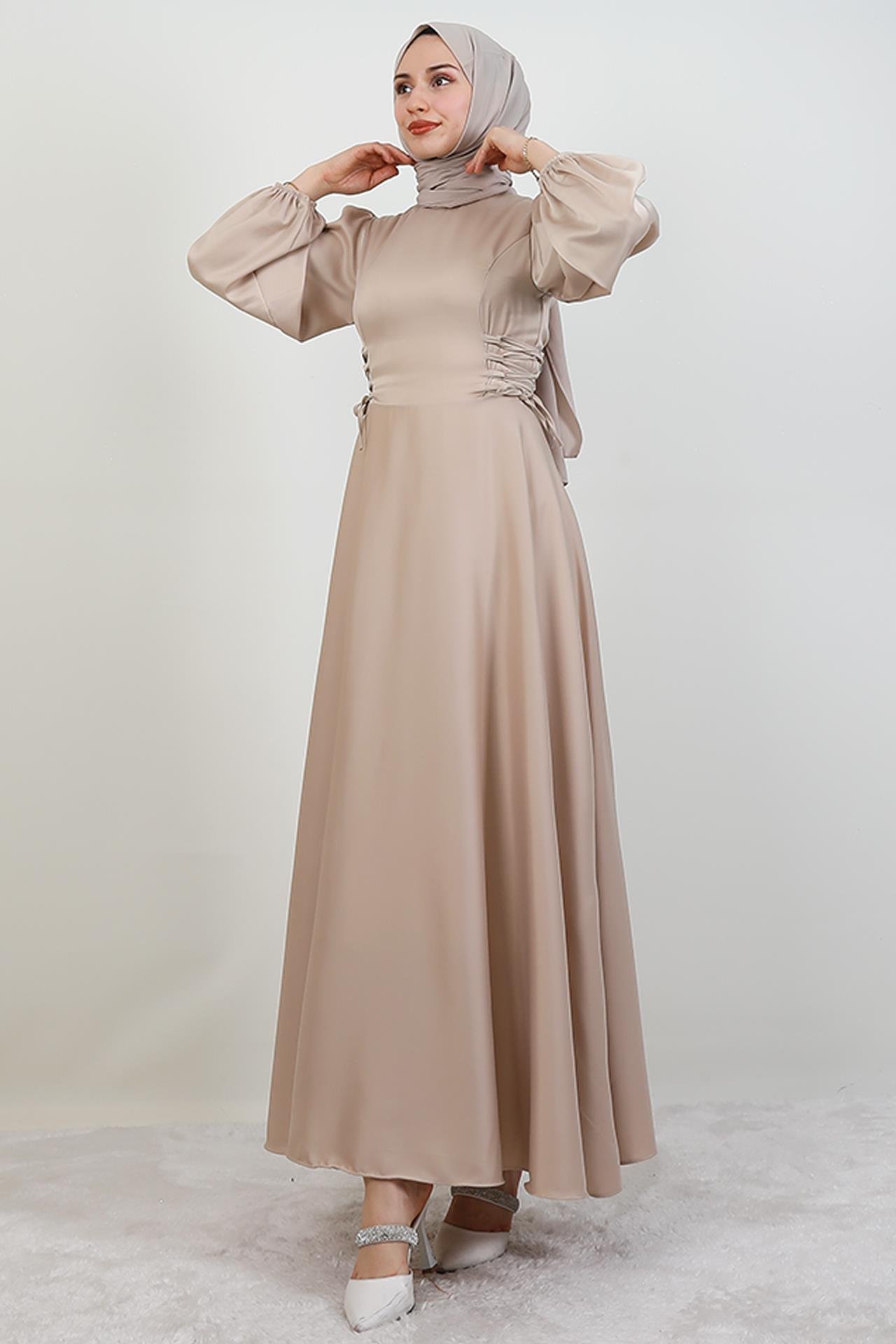 Yandan Bağcıklı Kloş Elbise Bal Köpüğü