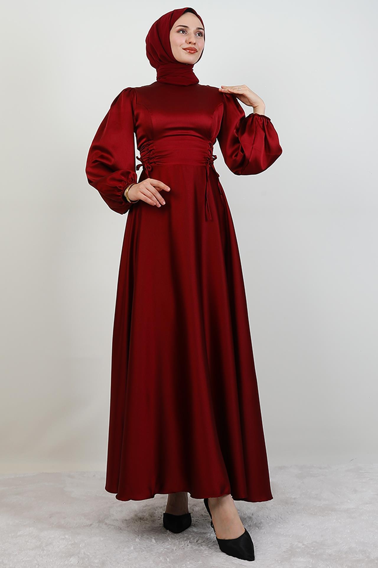 Yandan Bağcıklı Kloş Elbise Bordo (427649-B)