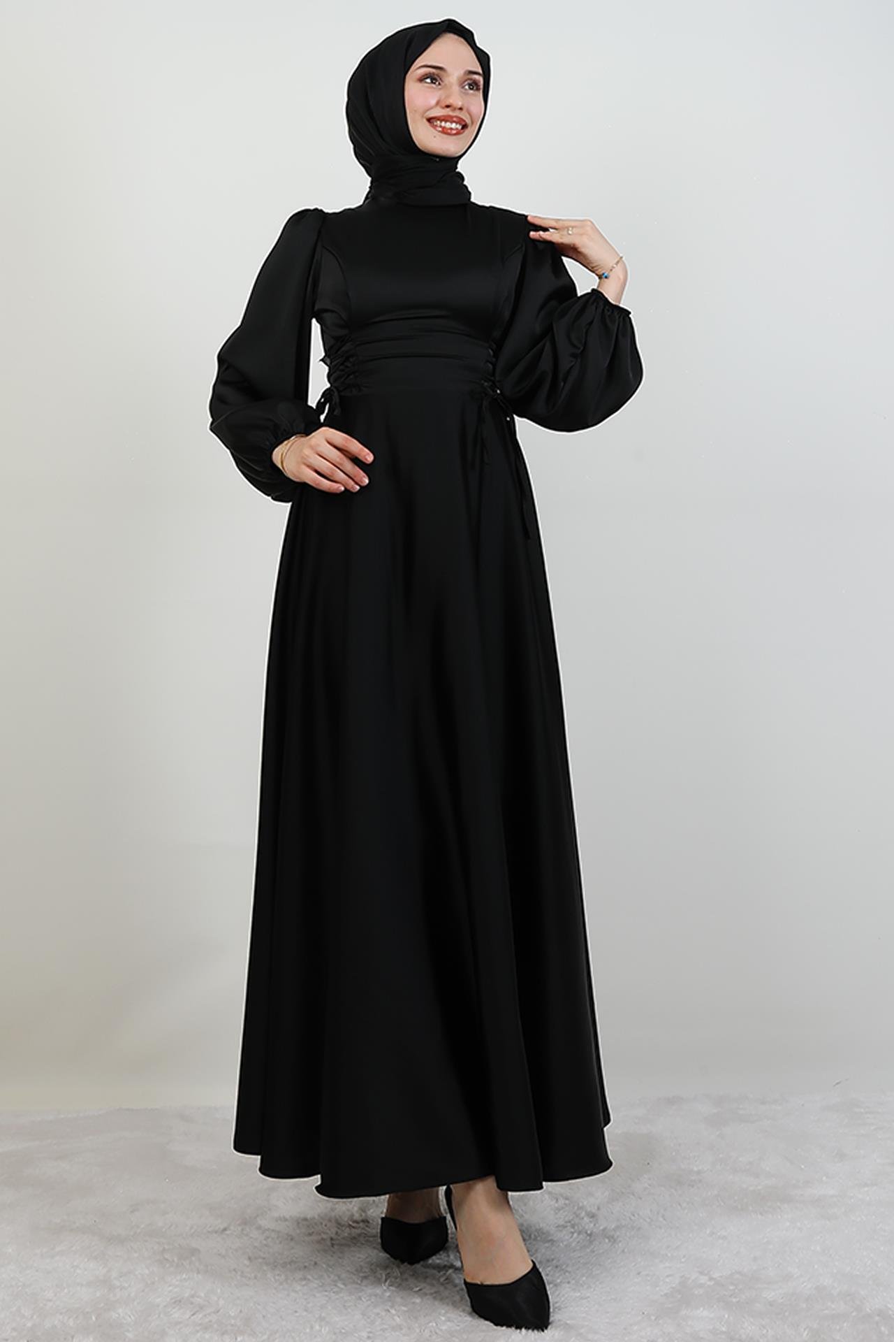 Yandan Bağcıklı Kloş Elbise Siyah (427649-S)