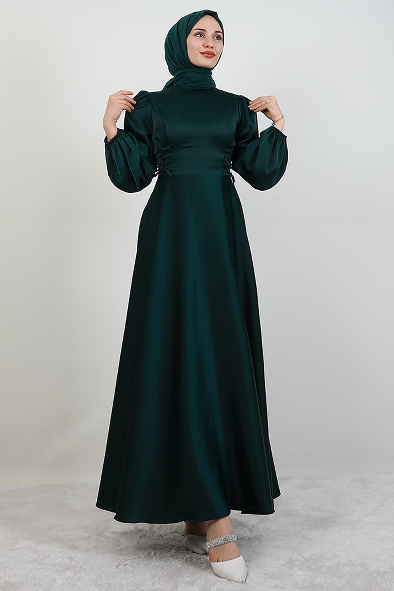 Yandan Bağcıklı Kloş Elbise Zümrüt (427649-Z)